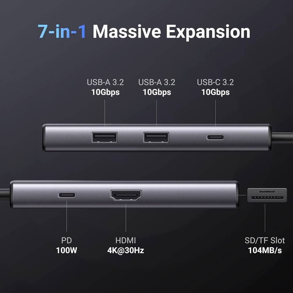 - გამომავალი: HDMI 4K@30Hz, USB-A 3.2 x2, SD/TF, USB-C