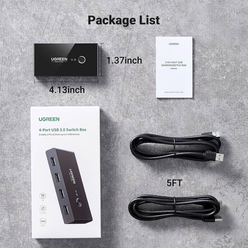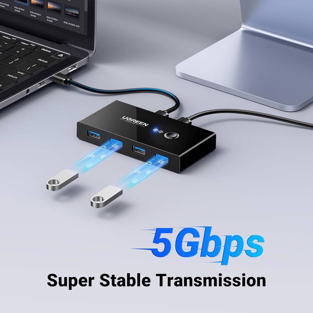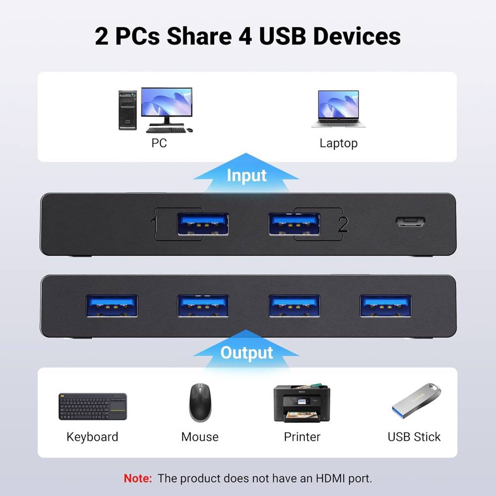სვიჩი UGREEN US216 (30768), 2 In 4 Out USB 3.0 Sharing Switch Box, Black