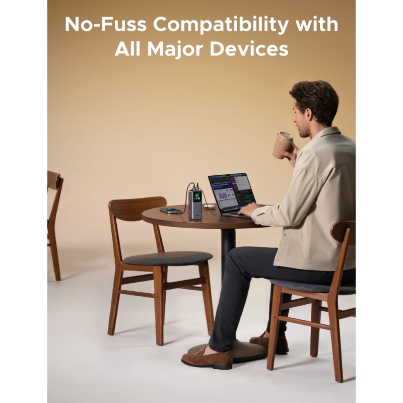 • მრავალპორტიანი ერთდროული გამომავალი: USB-C1 + USB-C2 – 165W მაქს.