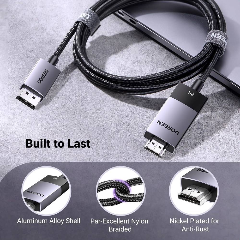 ვიდეო კაბელი UGREEN DP115 (80397), 8K, DisplayPort to HDMI, 2m, Grey