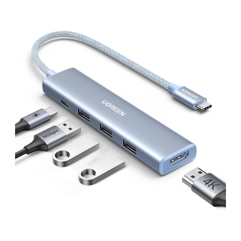 USB-C ჰაბი UGREEN CM380 (80856), Type-C, USB, HDMI, TF/SD, Grey
