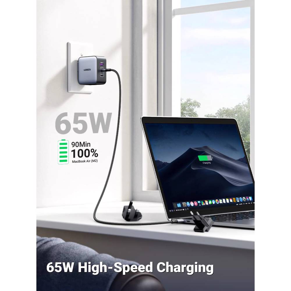 მობილურის დამტენი UGREEN CD296 (90409), Nexode, Travel Adapter, 65W, USB, Type-C, Grey